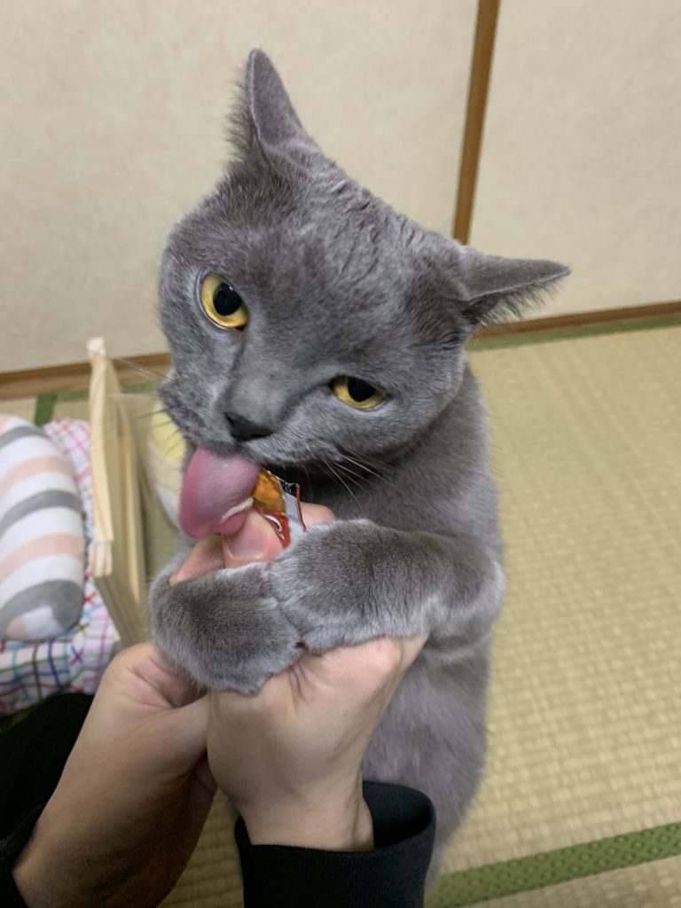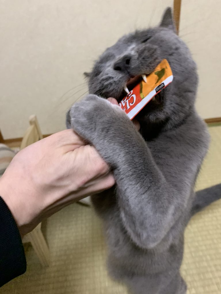 ちゅ〜るタイムぷくTwitterコピーコメント 2021.05.17 2021.02.18こんにちは。下僕です。 今日はぷくのおやつタイムの様子をお見せします。 おやつはちゅーる! さっそく声をかけてみました。 まだ開けてないよ! 早く食べたすぎて袋かじってます(^_^;) それでは開封! 舌ぺローン&両手で抱え込み 夢中過ぎて目が遠いです。しかも めちゃめちゃ爪先立ち 指先巻き込んでしまう程夢中で舐めてます。 ちゅーるは頻繁にあげてないので、あげた時のテンションの上がり具合はなかなかのものです。 以上、ちゅーるに夢中なぷくでした。